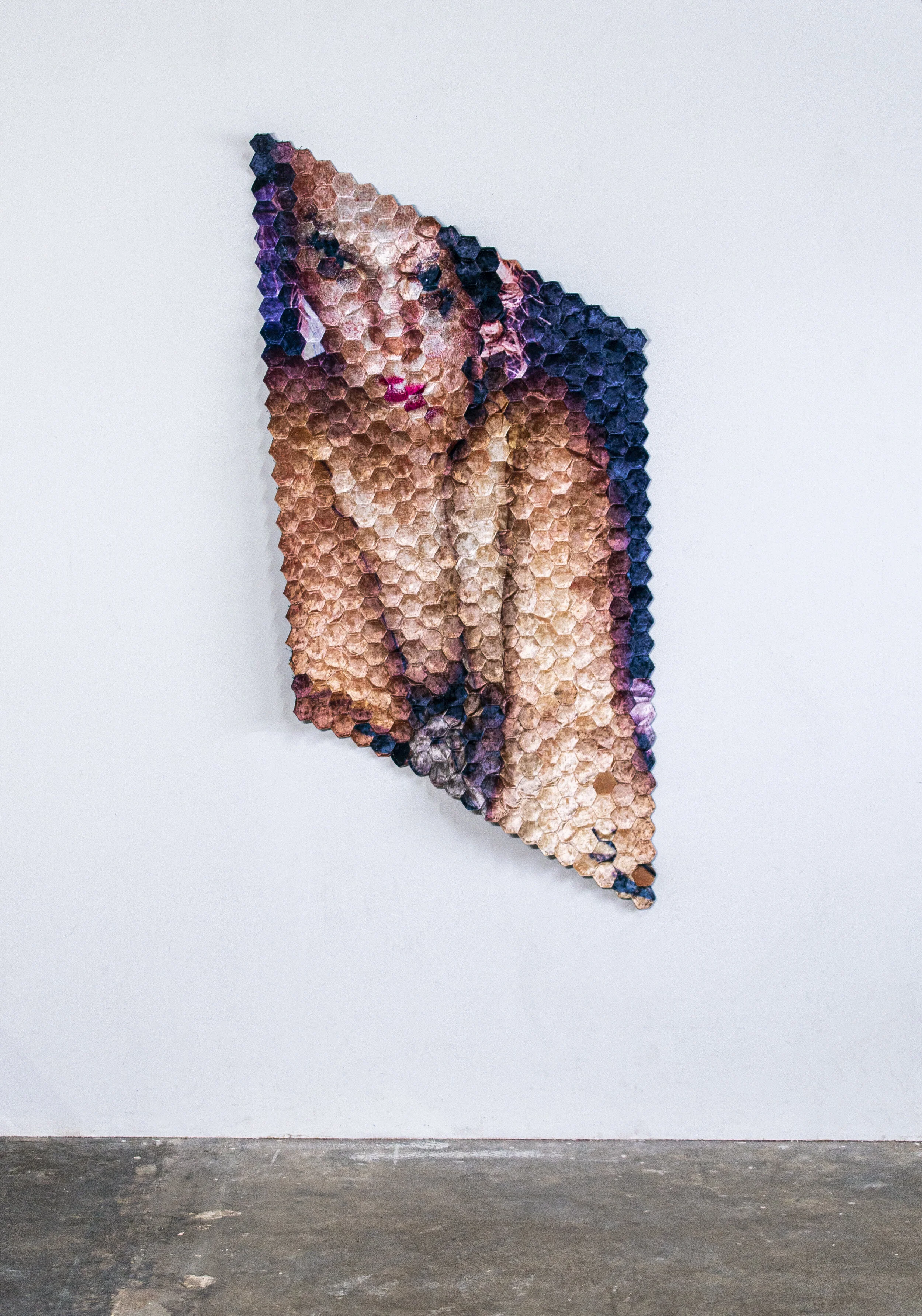 Digital image printed on crushed velour, thread, felt - hand sewn